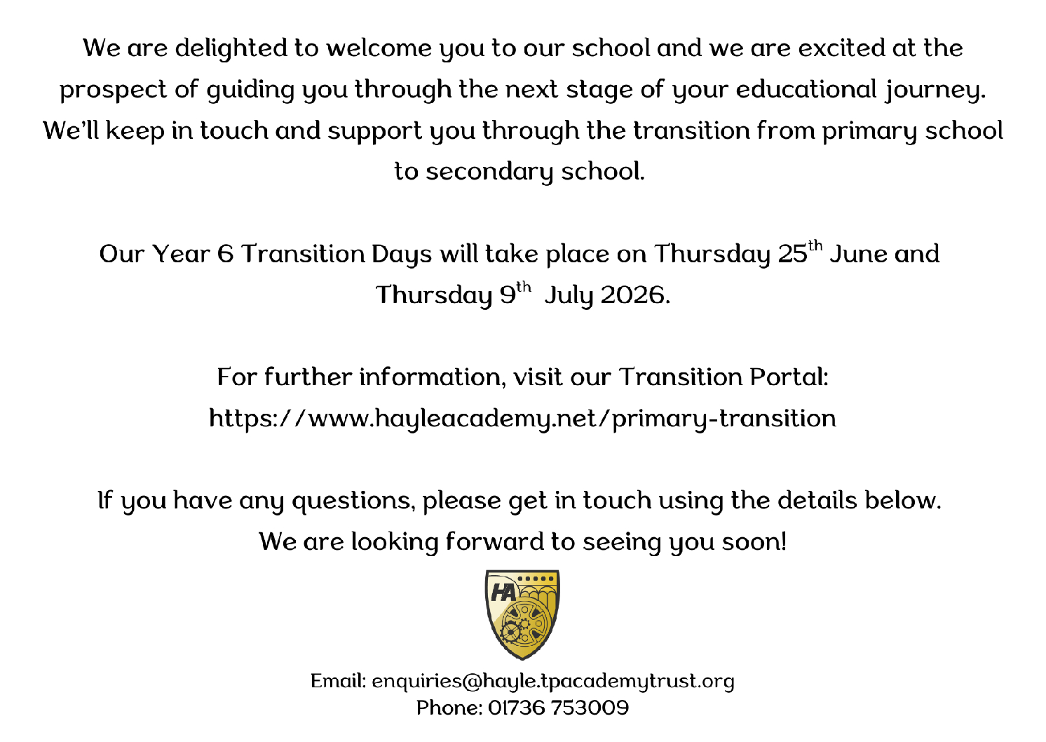 For any transition enquiries, please contact enquiries@hayle.tpacademytrust.org